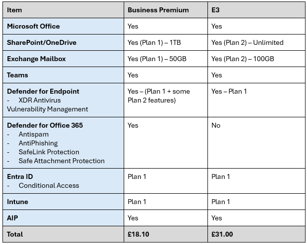 However, a common mistake is purchasing E5 simply because it’s perceived as “the best” without fully understanding what you’re getting for nearly double the cost of E3 (£50.30 per month vs. £31.00 per month). If you’re unaware of the specific features you’re paying for, or if they aren’t properly configured, then you won’t be getting the full value from your investment.